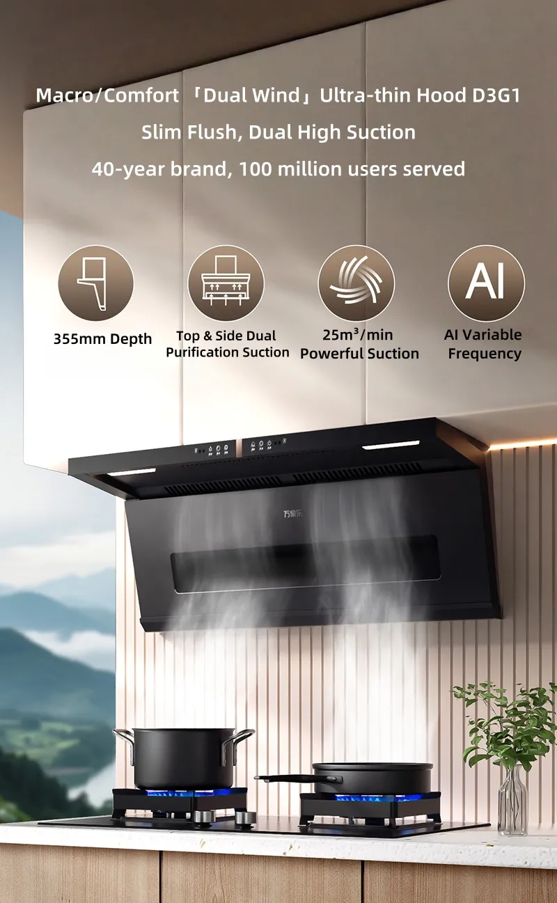 Macro/Comfort 「Dual Strong Wind」Ultra-thin Dual-suction Range Hood D3G1