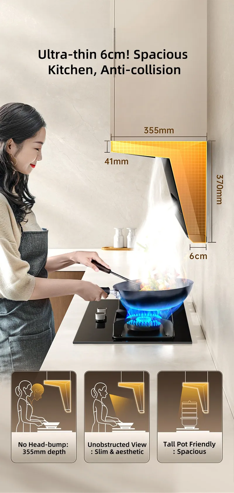 1000Pa Strong Wind Pressure - Smooth Discharge, No Fear of Peak Cooking Hours