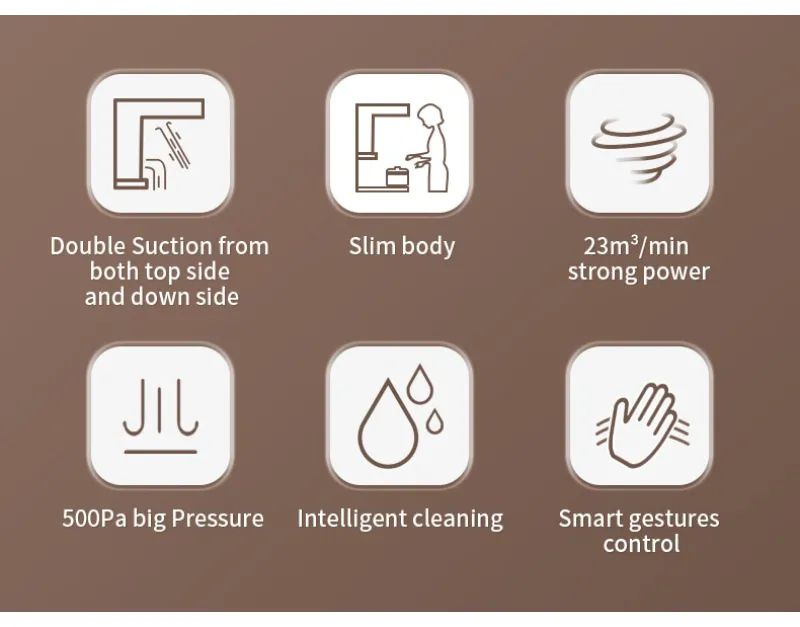 Big suction power in down side, for flash exhaust of most smoke, the residual smoke left to the top side suction, effective zoning smoke control, bringing complete exhaustion.