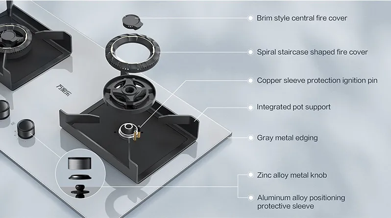 Built-in for seamless kitchen integration, this LPG/NG-compatible stove offers a 1-year warranty and free spare parts for reliable after-sales support. The cast iron pan support (optional) and cast iron burner caps enhance stability and heat resistance. Ideal for daily cooking needs, its compact design and dual-fuel adaptability make it a practical choice for spaces seeking both performance and modern aesthetics.