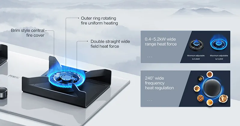 Uniform fire cooking fresh food Freshness locking into delicacy Macro double extreme fire series - freshness locking stove. Freshness locking by five steps Easy delicacy cooking Dedicated upgrading Uniform flame freshness locking burner