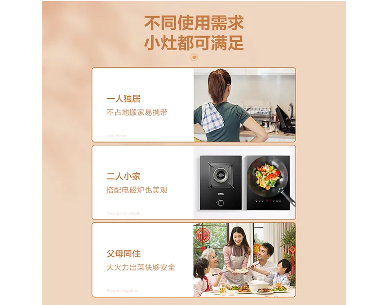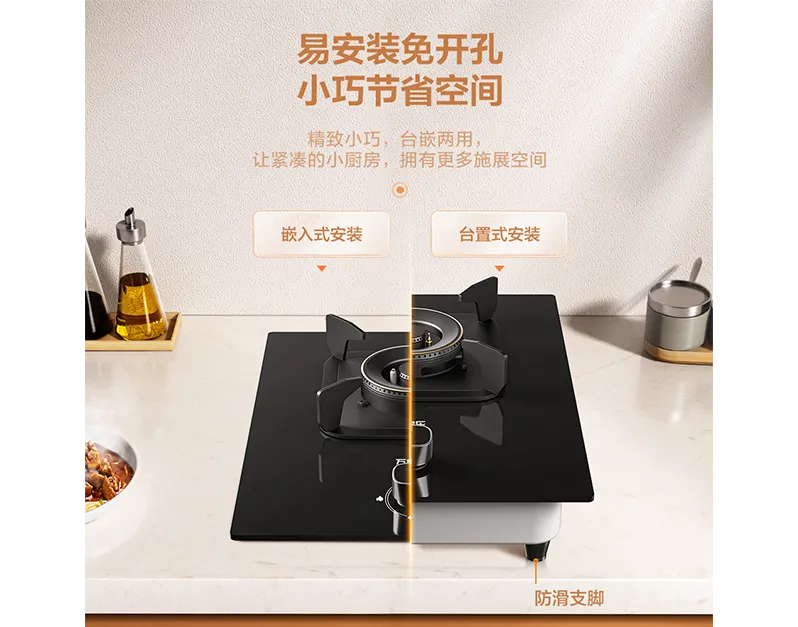 This single-burner gas hob offers efficiency in a space-saving design, ideal for small kitchens or supplementary cooking needs. The brass burner cap ensures durable, even heat distribution, while the enamel steel pan support provides stable, high-temperature-resistant cookware placement. Safety is prioritized with thermocouple flameout protection, automatically cutting gas supply if the flame extinguishes.