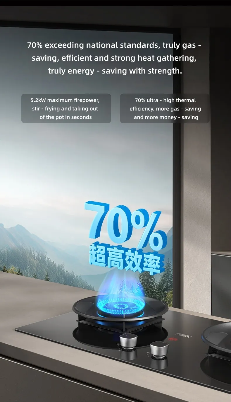 English:Other gas stoves in the industry have 59% thermal efficiency, large loss and high gas consumption;