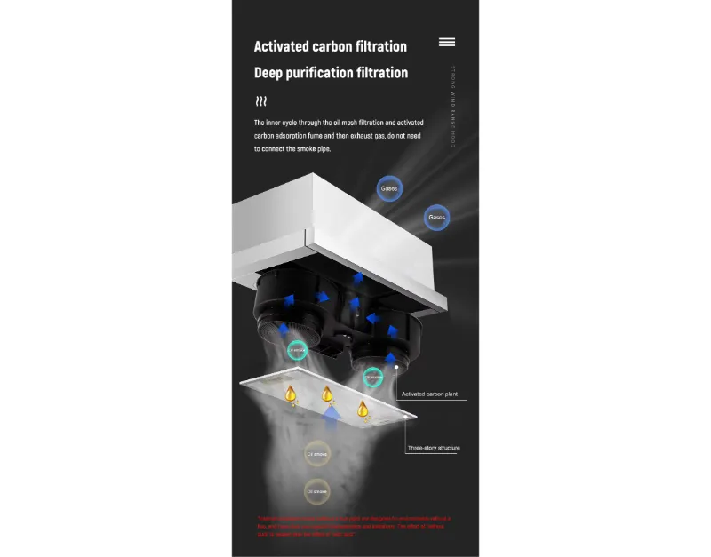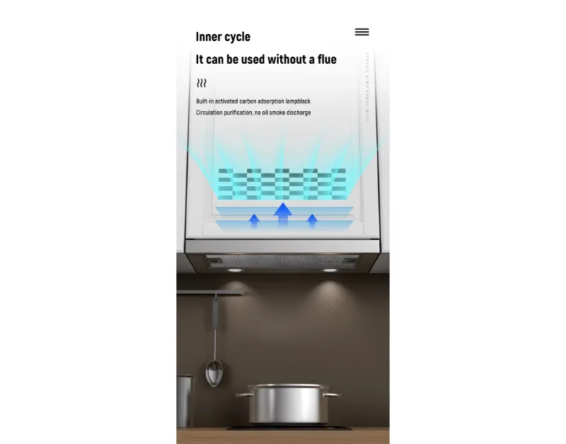 "Internal circulation hoods (without a flue pipe) are designed for environments without a flue, and have their own special characteristics and limitations. The effect of "without duct" is weaker than the effect of "with duct".