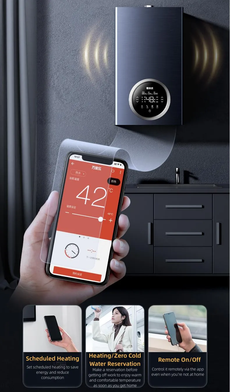 With the remote smart control function via the mobile app,you can regulate your home boiler.from anywhere, breakingthe limits of distance and time to enjoy a smart new life
