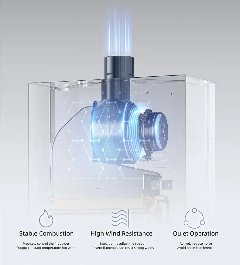 Equipped with a DC variable-frequency fan, it can intelligently adjust the fan speed, ensuring sufficient and stable combustion.