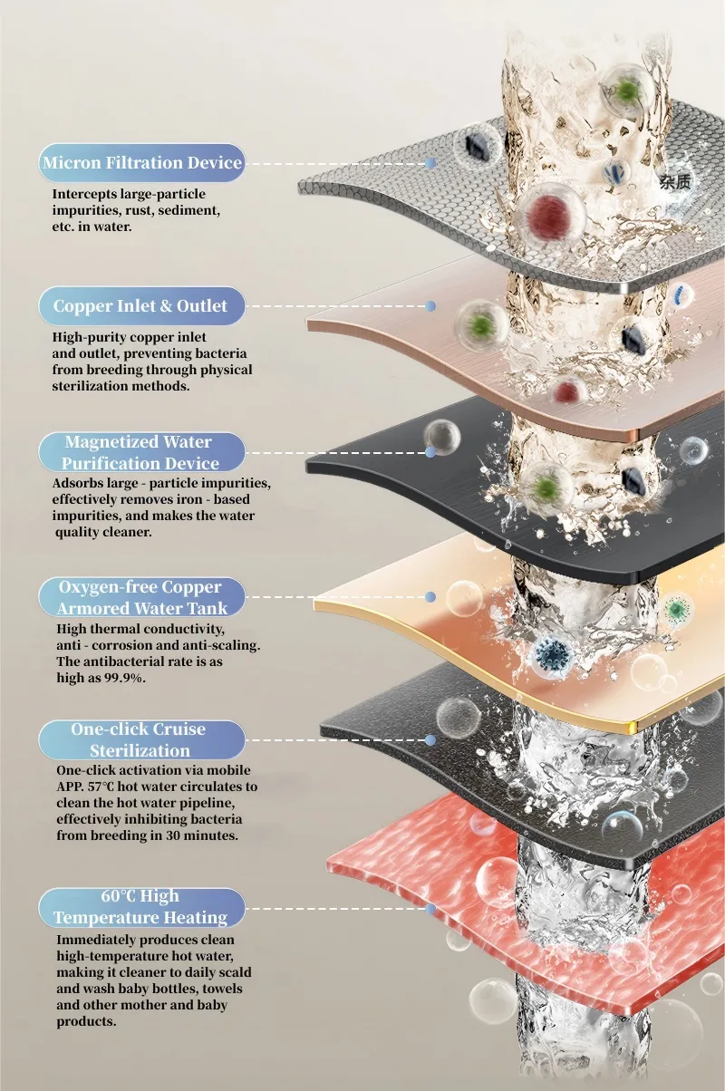 The Z6L Smart Gas Water Heater redefines bathing comfort with cutting-edge purification and intelligent temperature control technologies. Featuring Magnetic Purification Skin Care System, it effectively removes rust, chlorine, and impurities while eliminating bacteria for healthier skin. The 6-layer Antibacterial Protection ensures every shower nourishes your skin.