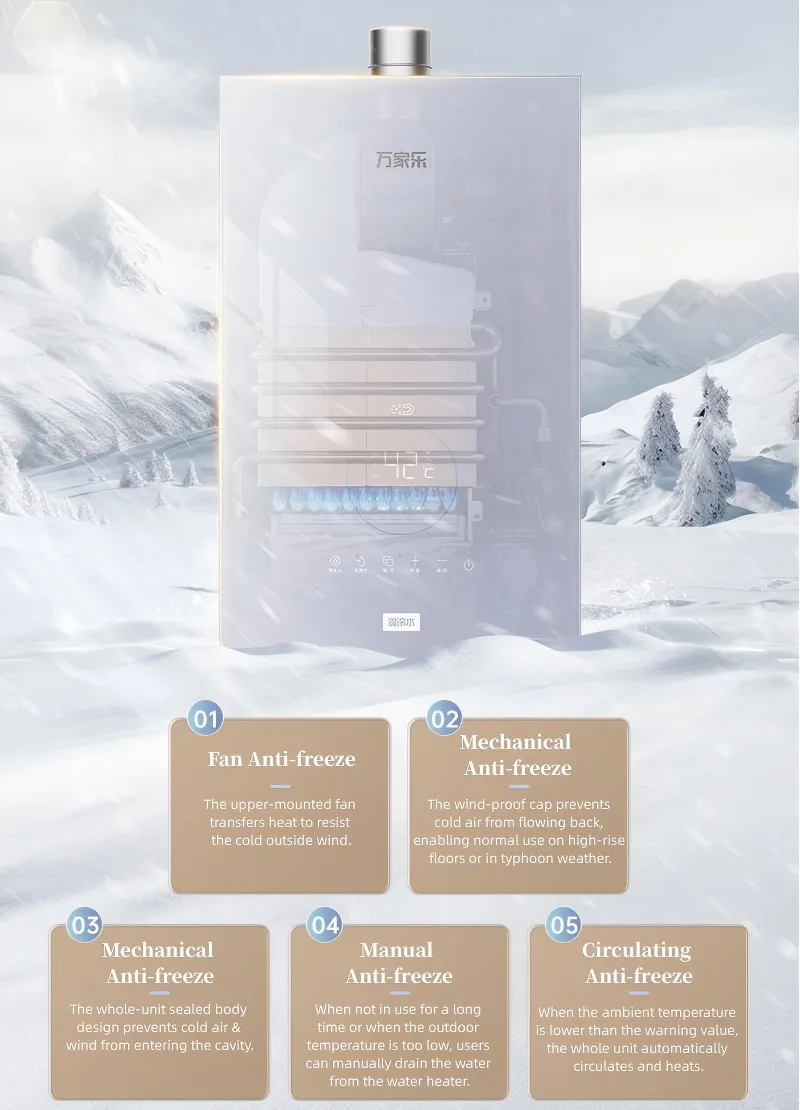 Designed for convenience, it offers one-touch presets for kitchen use and high-temperature needs, plus WiFi remote control for easy operation anywhere. Built to withstand challenges, its high wind resistance suits high-rise installations, and 3D Anti-Freeze Protection ensures winter reliability. With 89 safety safeguards, enjoy complete peace of mind 24/7.