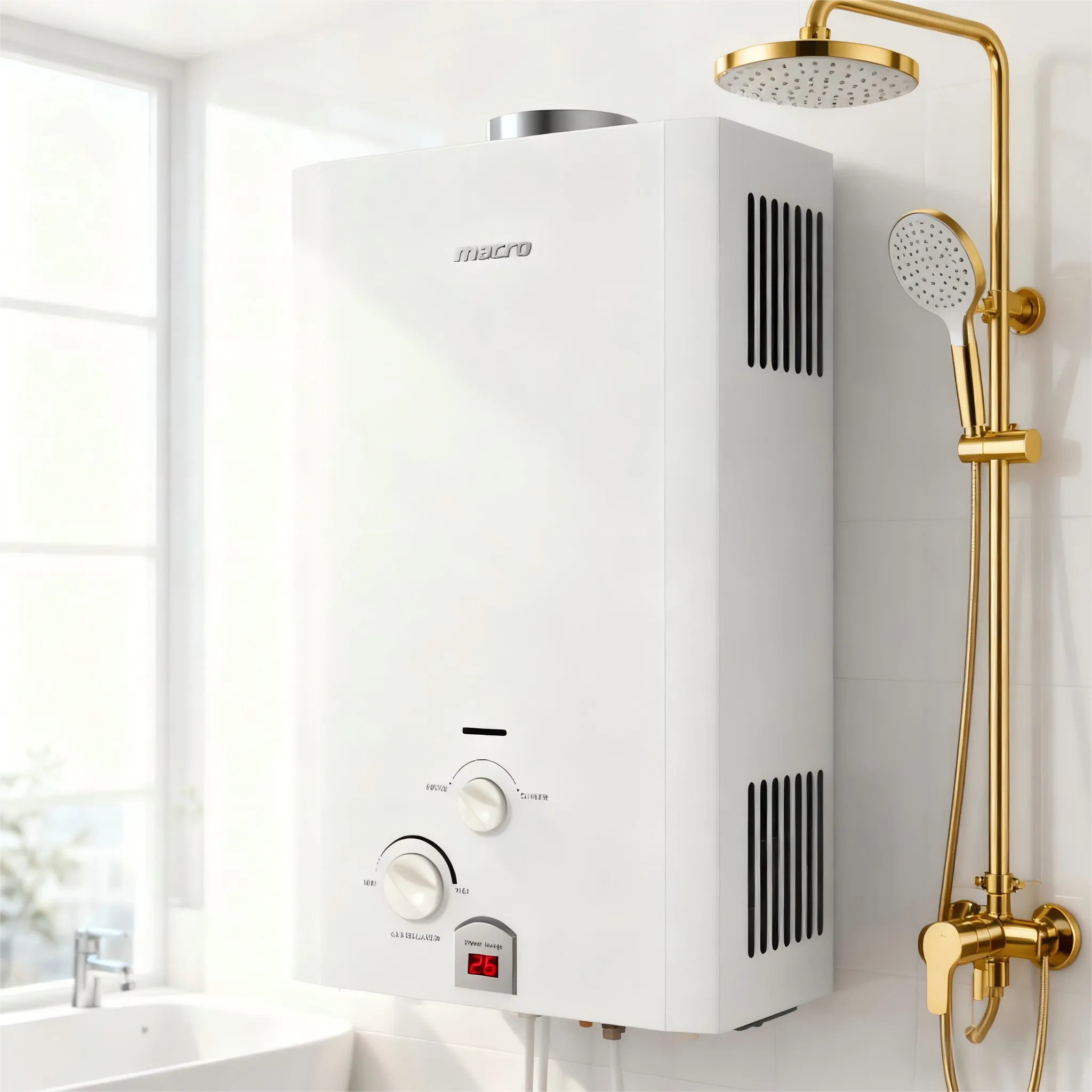 Introducing the T6 Series Gas Water Heater from Macro, a cutting-edge solution for efficient and reliable hot water supply. Available in three models—JSD12-6T6, JSD20-10T6, and JSD24-12T6—this series offers rated hot water capacities of 6L/min, 10L/min, and 12L/min, compatible with both NG and LPG. It features multi-protection, LED water temperature indicator, water pressure release device, summer/winter modes, double ignition, and low water pressure adaptability, ensuring top-tier performance, safety, and convenience for diverse usage scenarios.