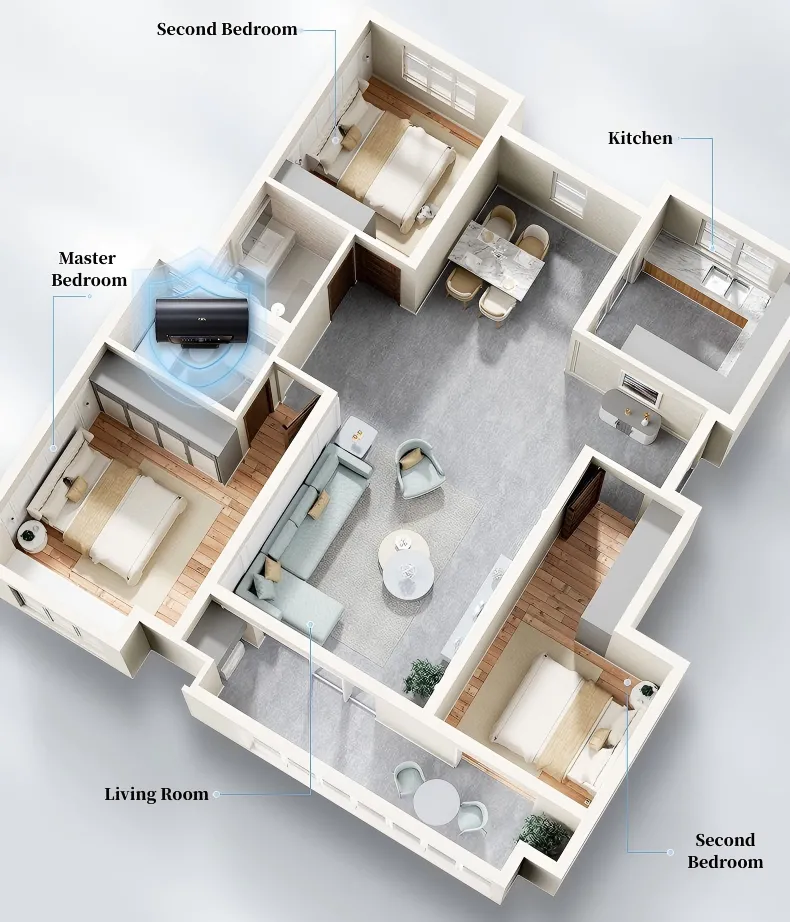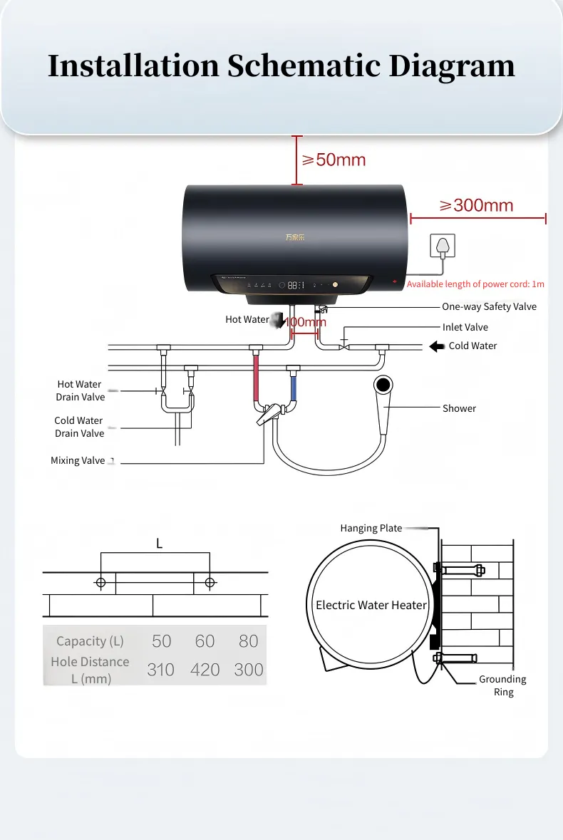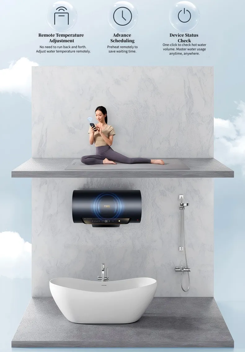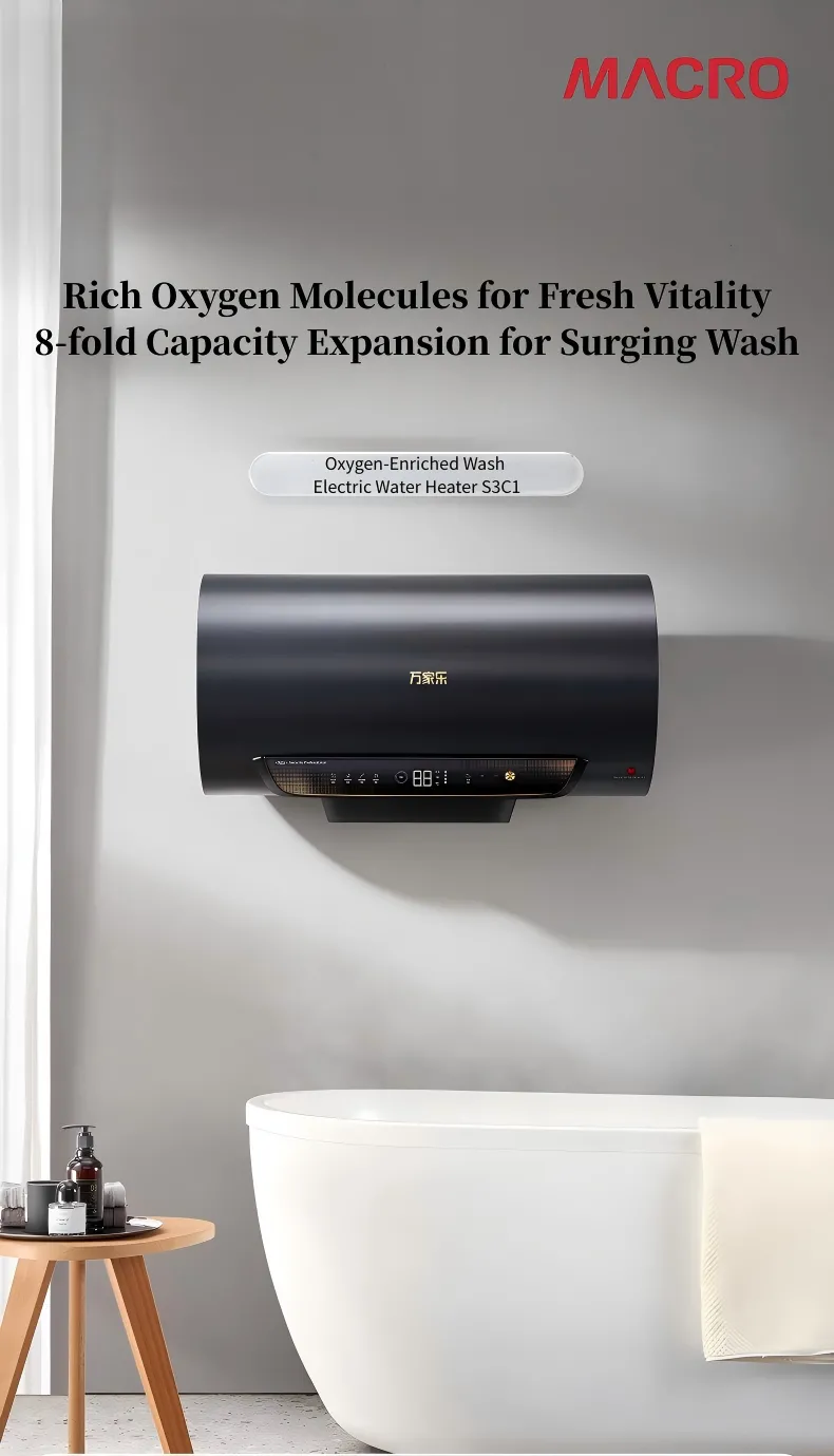 The S3C1 Non-Electric Water Heater redefines safety and luxury with its Non-Electric Wash 2.0 technology (leakage-proof + ground fault alert + power-cut during use). Its 60L enamel tank delivers 8x extended capacity, while 3200W rapid heating and oxygen-rich bathing (infused with air bubbles) ensure a spa-like experience. Equipped with 6 purification systems (e.g., high-density magnesium rod, M-shaped water flow), it guarantees 99% bacteria-free water. Smart features include WiFi/touch control, visual water-level reminders, and 1st-tier energy efficiency (80% hot water output). Eight safety protections (anti-freeze, dry-fire prevention, etc.) and an 8-year warranty offer peace of mind. The starry design blends seamlessly into modern spaces, making it a perfect mix of aesthetics, innovation, and reliability.