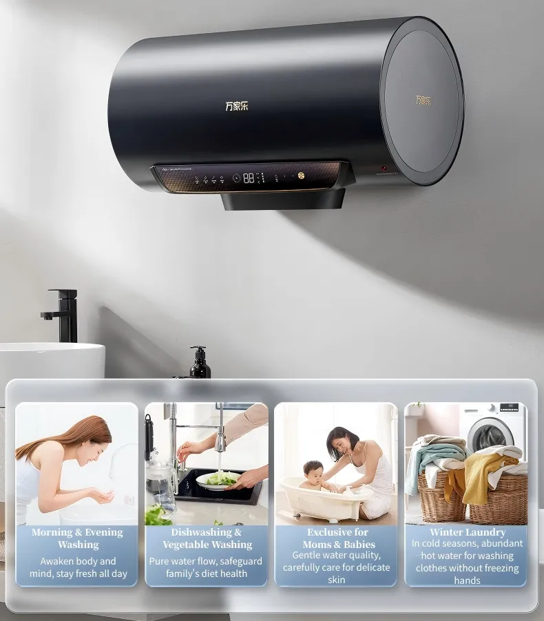 With 1st-tier energy efficiency (80% hot water output rate) and 6 purification systems (including high-purity magnesium rod and independent drainage), it reduces scale buildup and bacteria by 99%. The WiFi-enabled touch panel allows remote scheduling and real-time usage tracking.