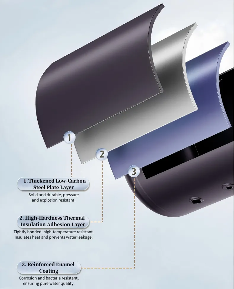 High - density enamel layer technology, sintered at 950℃, with a smooth and tight inner wall. Resists corrosion and scale, eliminating the trouble of frequent cleaning.