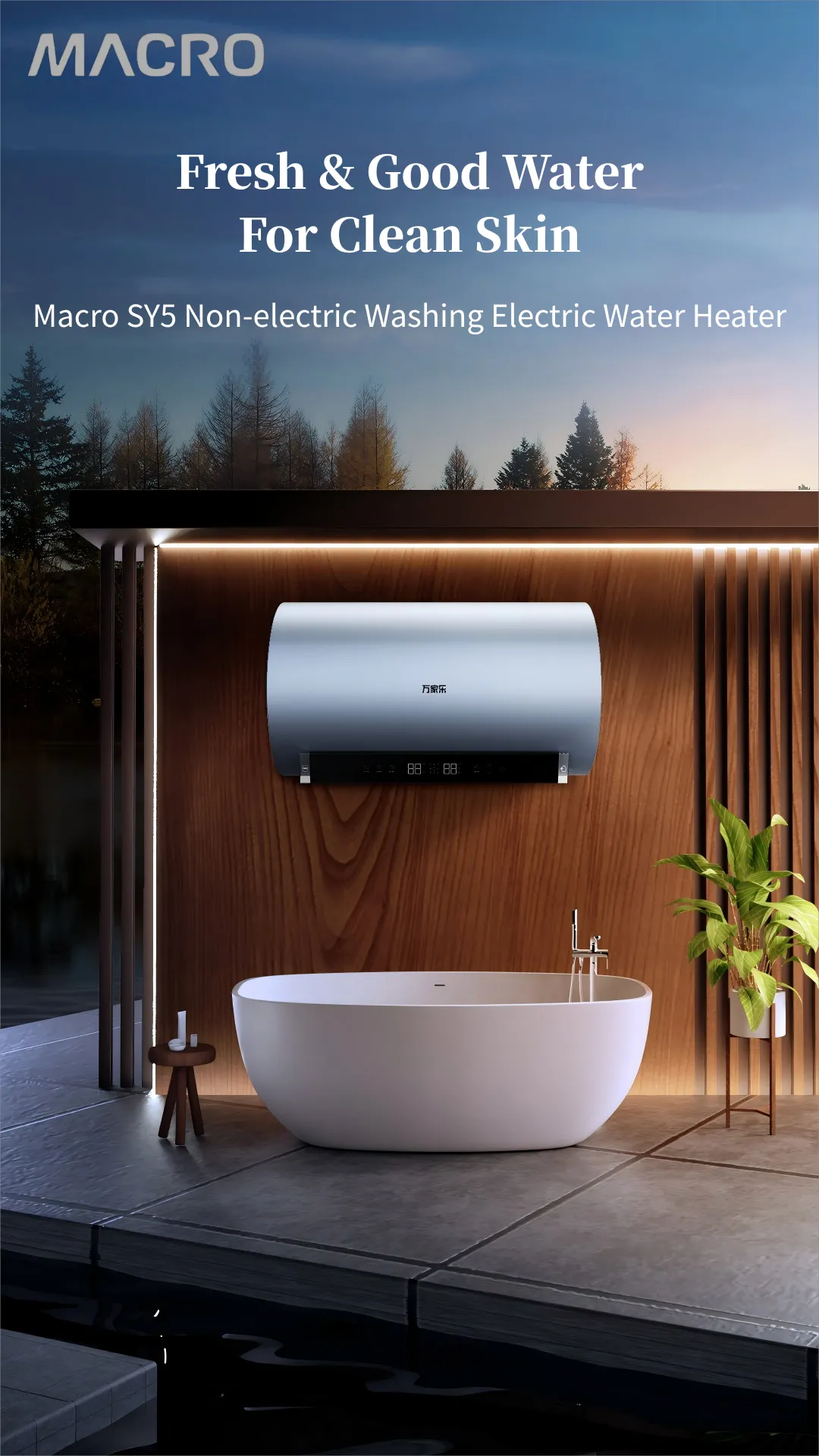 The Macro SY5 Electric Water Heater is a standout choice for your bathing needs. Featuring the No - Electric Washing 2.0 technology, it ensures safety by cutting off power during water use. With 1st-class energy efficiency, it saves energy while providing ample hot water. Its elegant glacier blue appearance adds aesthetic value to your space. Equipped with 7-fold protection and purification systems, it guarantees safe and healthy hot water. Plus, smart functions like WiFi control and appointment make usage convenient.