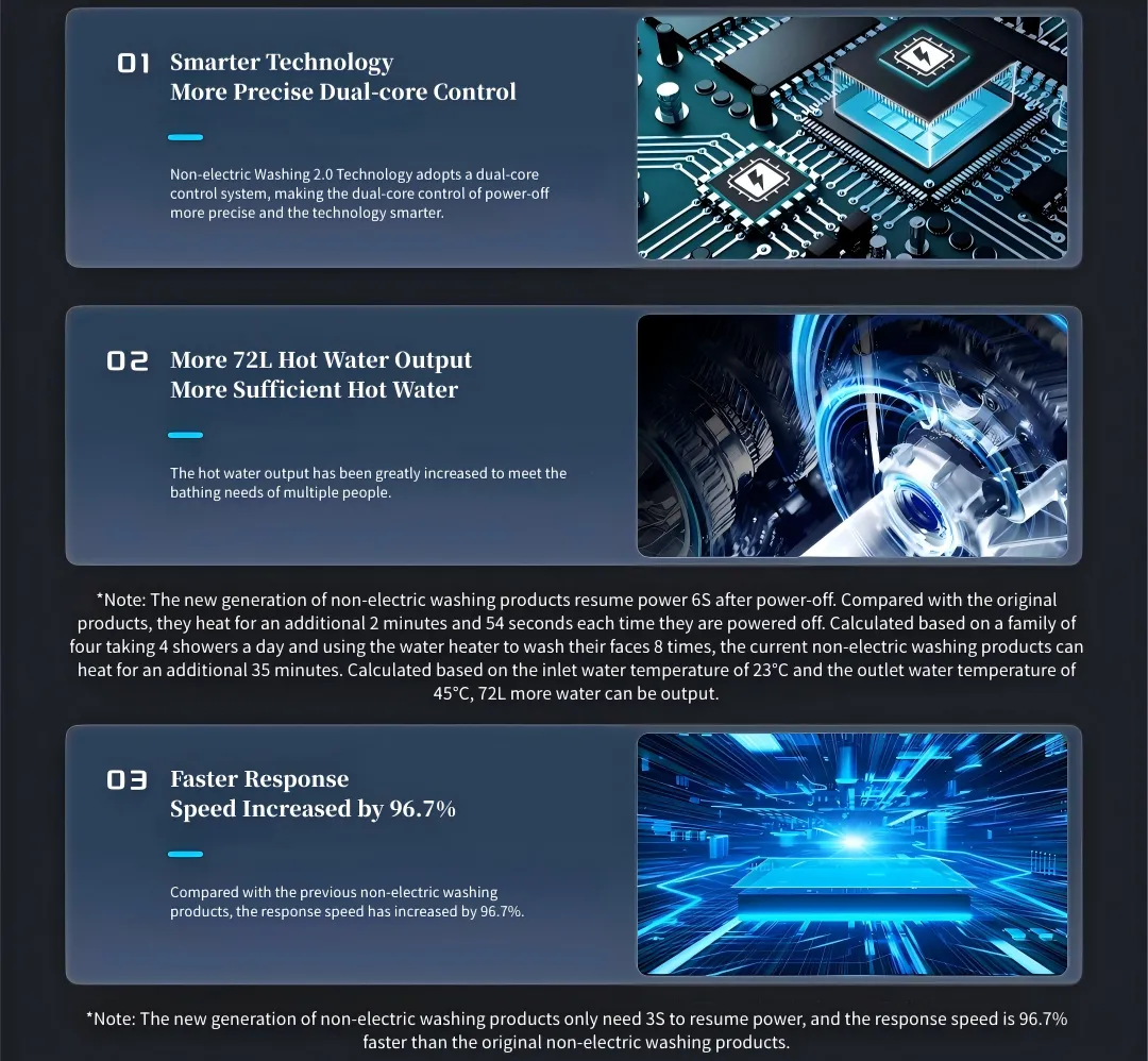 Adopting Non-electric Washing 2.0 Technology and Four Patent Technologies with Dual-core Control System to Strongly Ensure Bathing Safety