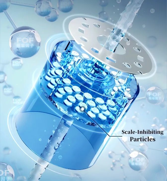 Built-in scale-inhibiting device releases FOF active scale-inhibiting factors through micro-pores,