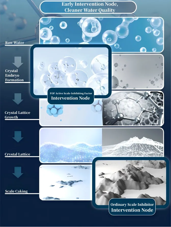FOF active scale-inhibiting factor scale inhibitor intervenes at the initial stage of crystal embryo formation,