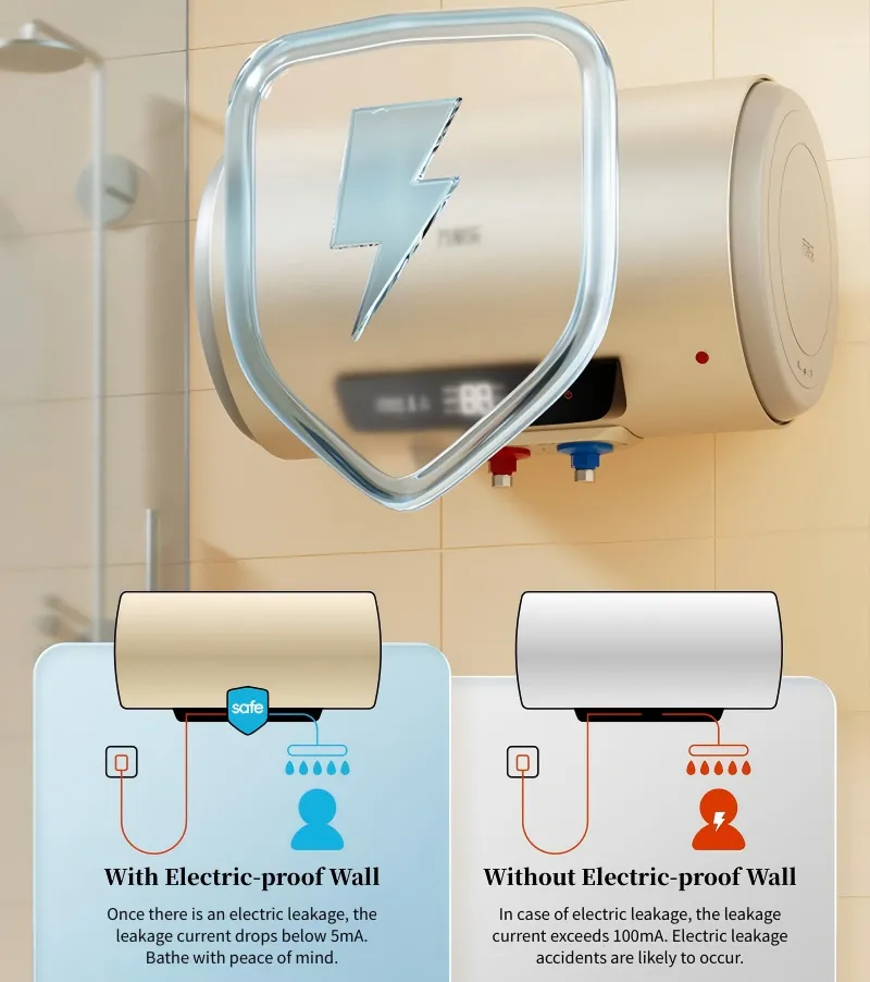 Upgrade your bathing experience with the SY1 Electric Water Heater, combining advanced Shock-Free 2.0 technology (ground fault alert, auto power-off, and dual leakage protection) for ultimate safety. Powered by 3000W rapid heating, it delivers instant hot water while achieving Grade 2 energy efficiency—saving costs without compromising performance.