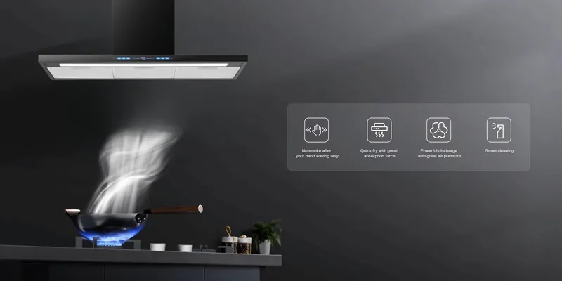Hand waving in air can discharge smoke very easily. If you forget to turn on the range hood after quick frying you will not act with confusion, and you can also take it easy.