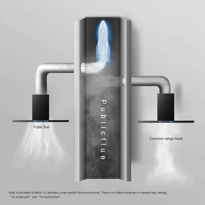 Note: to be tested at Macro’s Laboratory under specific flue environments. There is no visible smoke jam or reverse flow, namely, “no smoke jam” and “no reverse flow”.