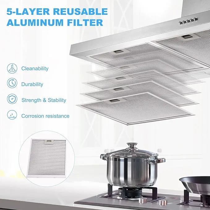 Tieasy range hood is made of fully heavy-duty brushed stainless steel, ensuring easy-maintenance, sturdiness and corrosion-resistance