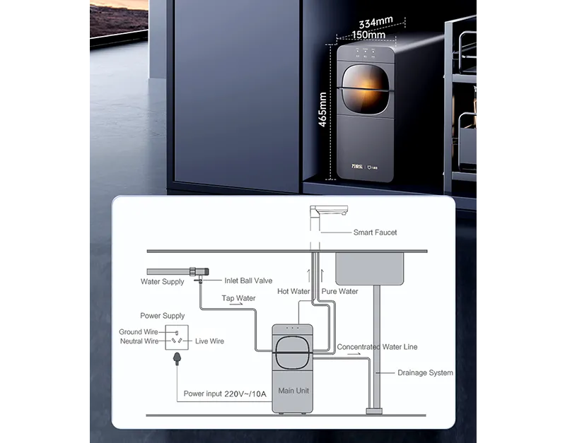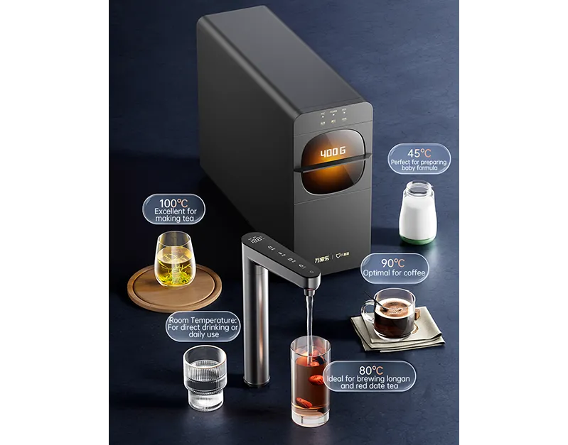 With five adjustable temperature settingsthis system offers precise and efficient hot water dispensing for multiple scenarios. Features include real-time temperature display, filter replacement reminders, and a child safety lock for added convenience and safety.